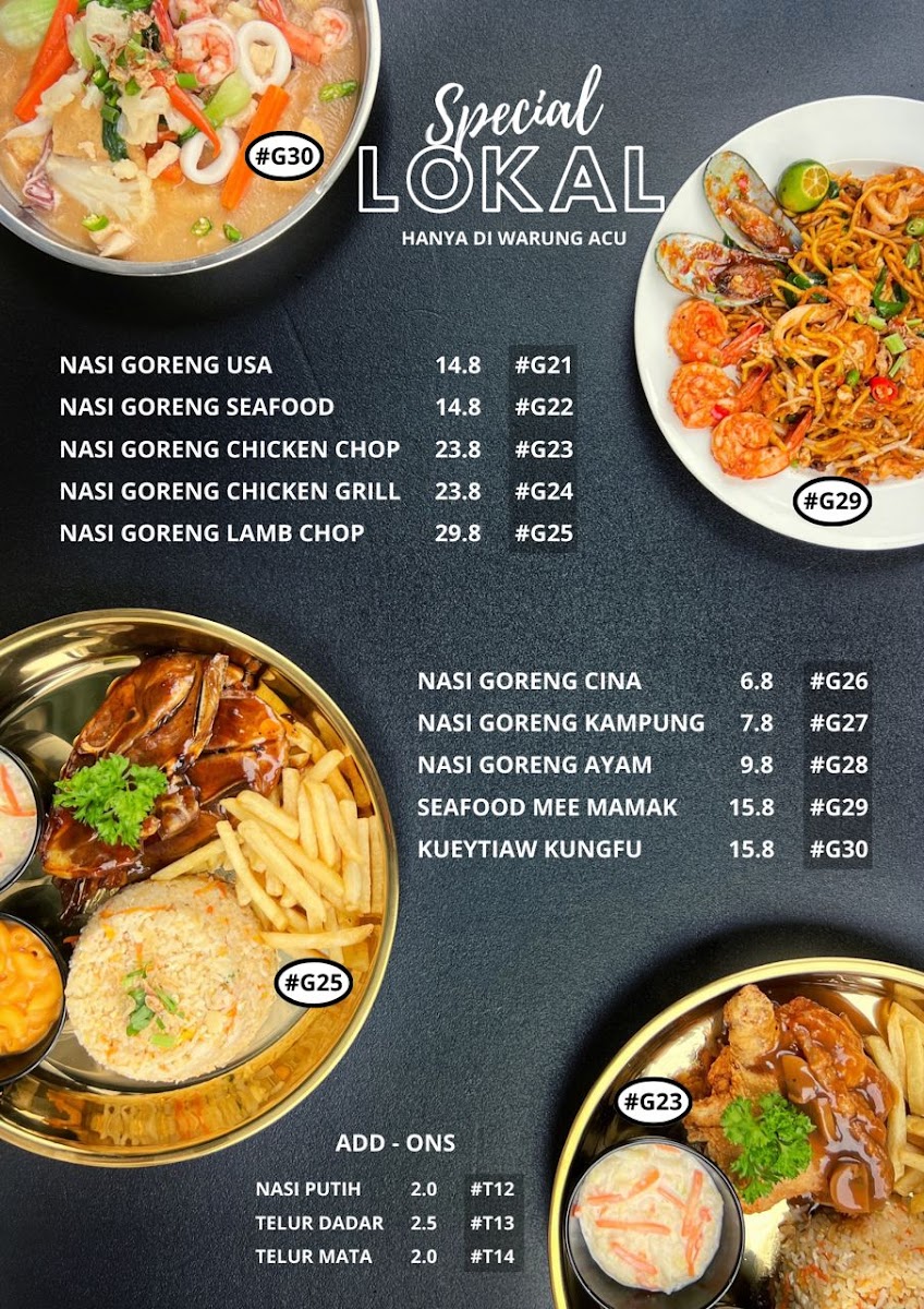 Welcome to Warung Acu, a vibrant dining destination nestled at 9, Jalan Dagang 2, Taman Bukit Angin, Temerloh. This café effortlessly blends traditional Malaysian flavors with an international twist, offering a diverse menu that includes everything from Malay classics to Korean and Western dishes.